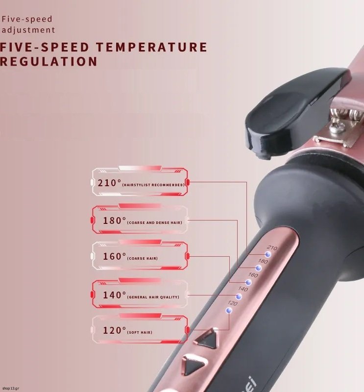 Ιδανικό για να δημιουργήσεις μπούκλες. Προσφέρει εύκολη χρήση και επαγγελματικό αποτέλεσμα στο σπίτι. Με ρυθμιζόμενη θερμοκρασία και γρήγορη θέρμανση, σου επιτρέπει να πετύχεις το στυλ που θέλεις σε λίγα λεπτά.