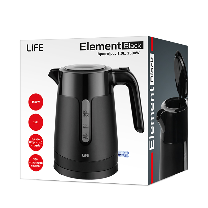 Ο νέος κομψός βραστήρας 1.0 λίτρου LIFE ELEMENT συνδυάζει μοντέρνο σχεδιασμό και υψηλή λειτουργικότητα.