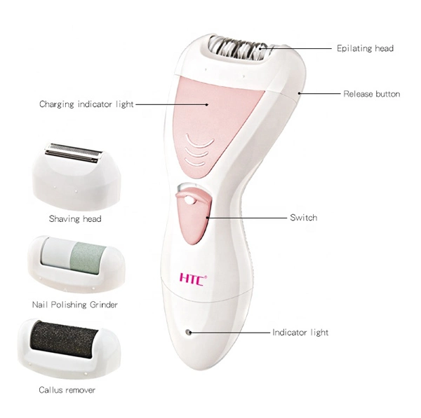 HTC αποτριχωτική μηχανή HL-026, 4 σε 1, επαναφορτιζόμενη, αδιάβροχη, ροζ