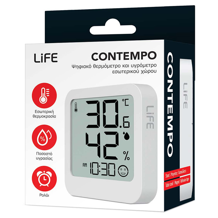 LIFE CONTEMPO WHITE Ψηφιακό θερμόμετρο και υγρόμετρο εσωτερικού χώρου.
