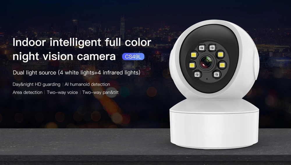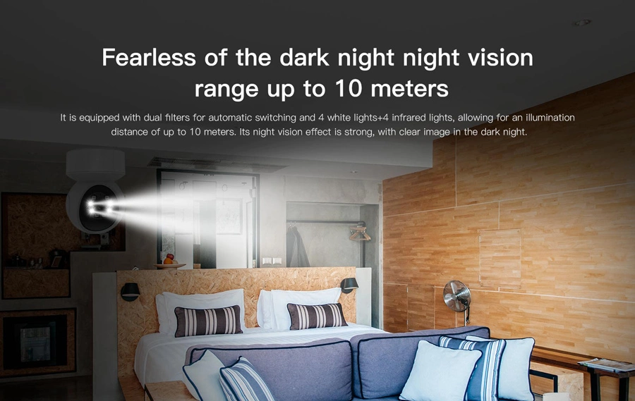 Night Vision: IR-CUT with auto-switching,dual light source, 4 white lights, 4 infrared lights, illumination distance 5-10 meters