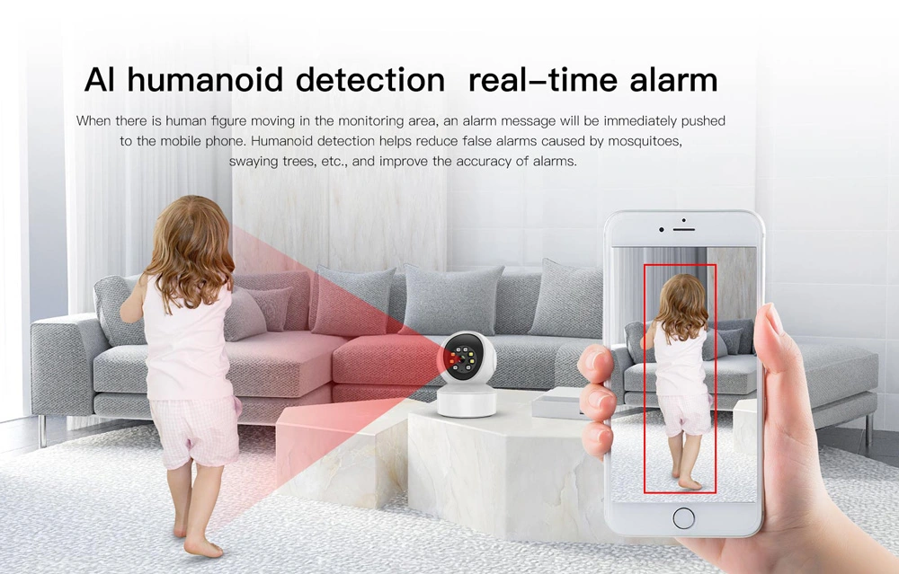 Alarm detection: Support mobile detection,humanoid detection, human framing, absence detection, area detection