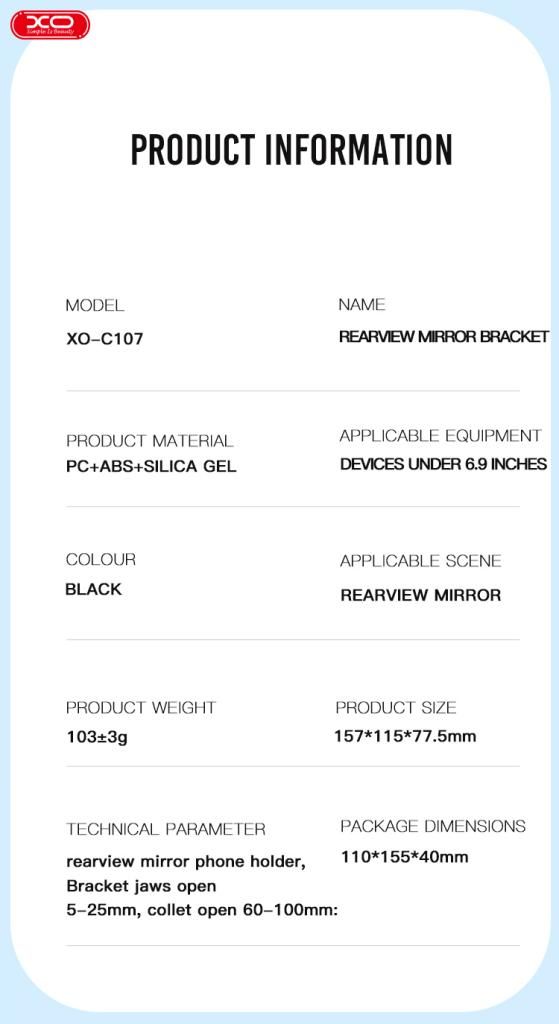 XO C107 Βάση Αυτοκινήτου Καθρέφτη