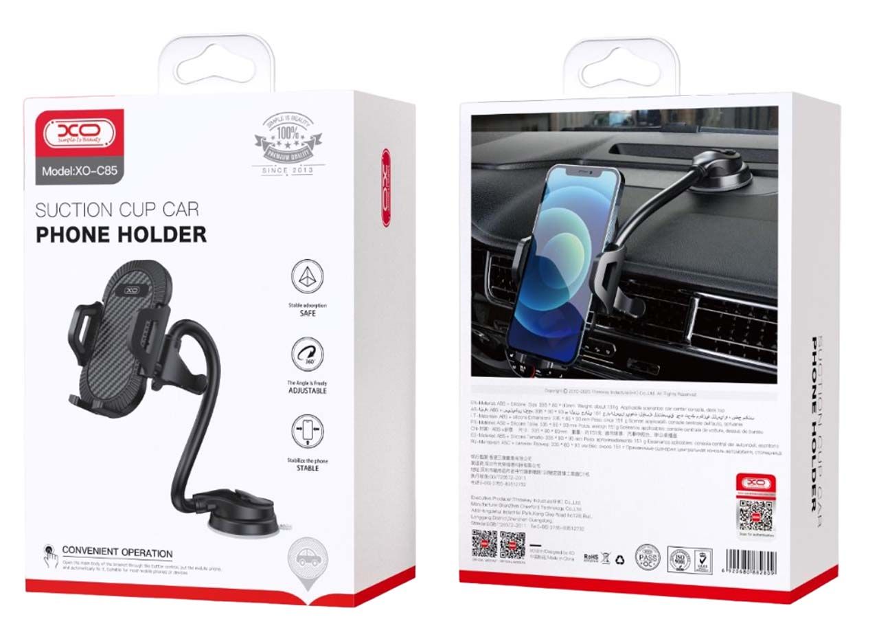 Το XO C85 είναι μια βάση αυτοκινήτου σε γενική έκδοση για ταμπλό / παράθυρο αυτοκινήτου. Επιτρέπει τη βολική θέση της συσκευής στο οπτικό πεδίο και στα χέρια του οδηγού. Η ευκολία στη χρήση σάς επιτρέπει να αφήνετε γρήγορα το τηλέφωνο κάτω και να το βγάλετε με το ένα χέρι.