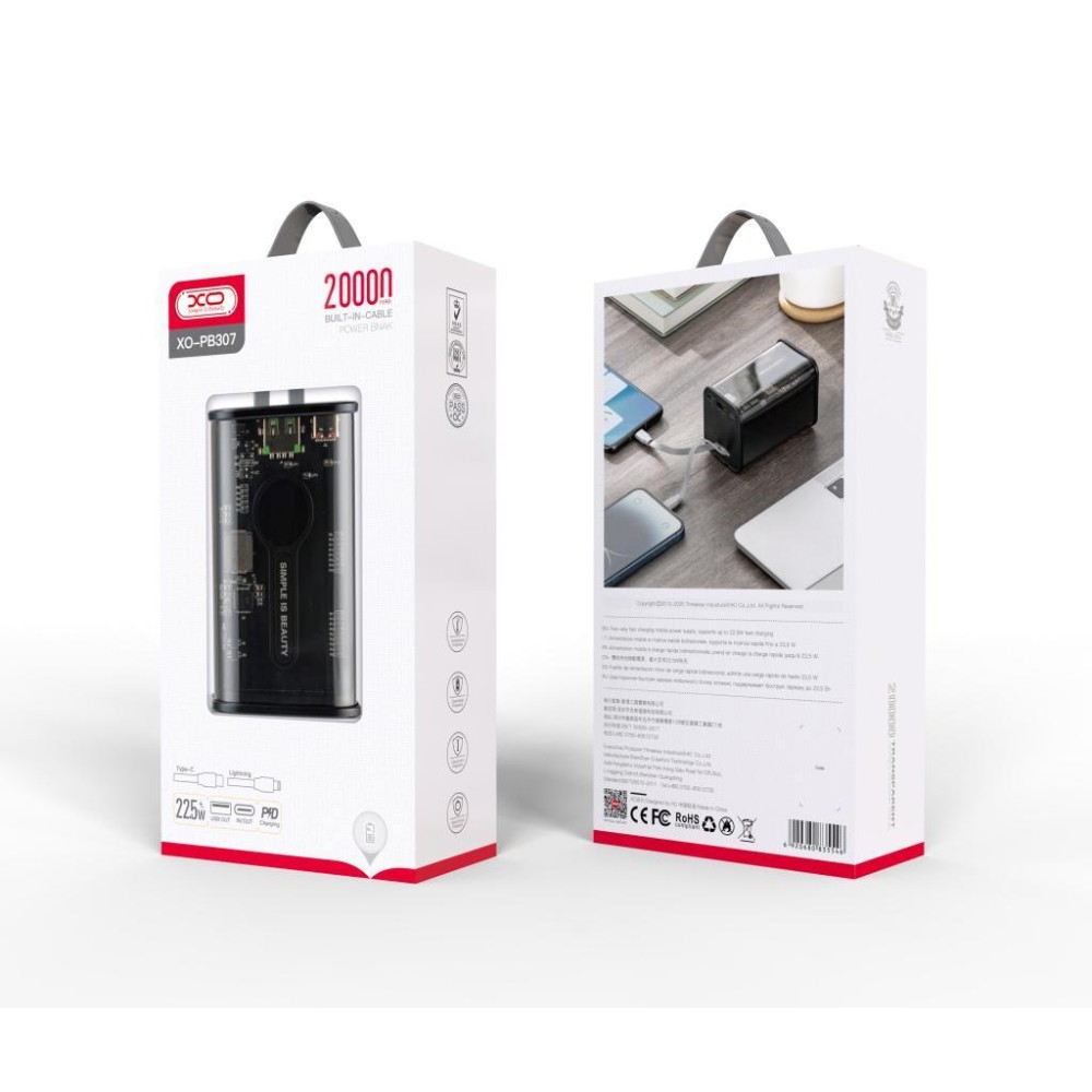 XO PB307 ΔΙΑΦΑΝΟ POWERBANK QC22.5W/PD20W ΜΕ ΕΝΣΩΜΑΤΩΜΕΝΟ ΚΑΛΩΔΙΟ TYPE-C, Lightning ΚΑΙ ΟΘΟΝΗ, 20000mAh