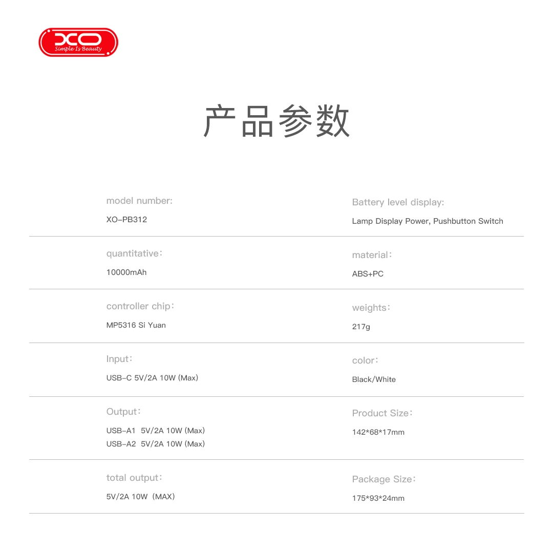 XO PB312 Powerbank 10.000mAh Μαύρο
